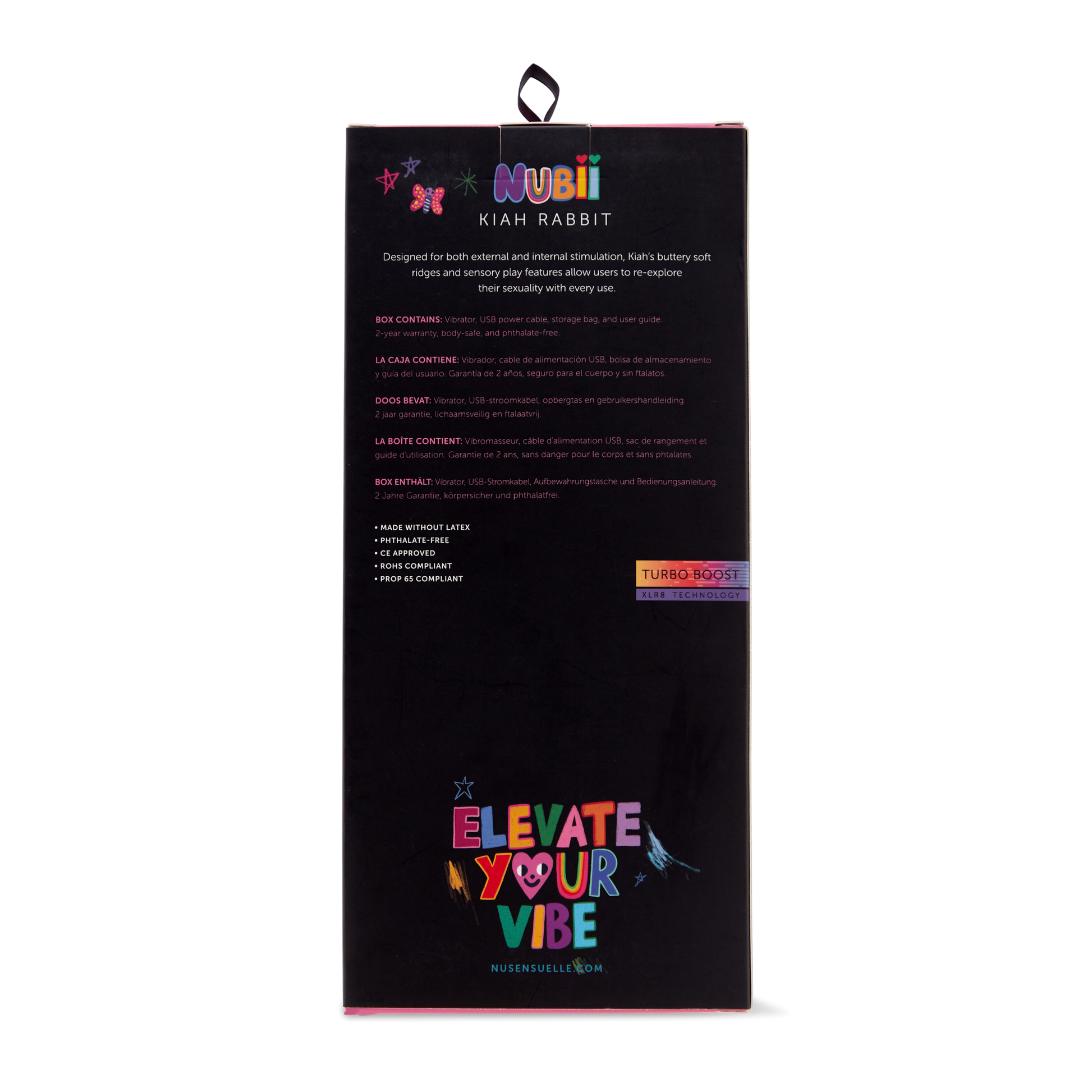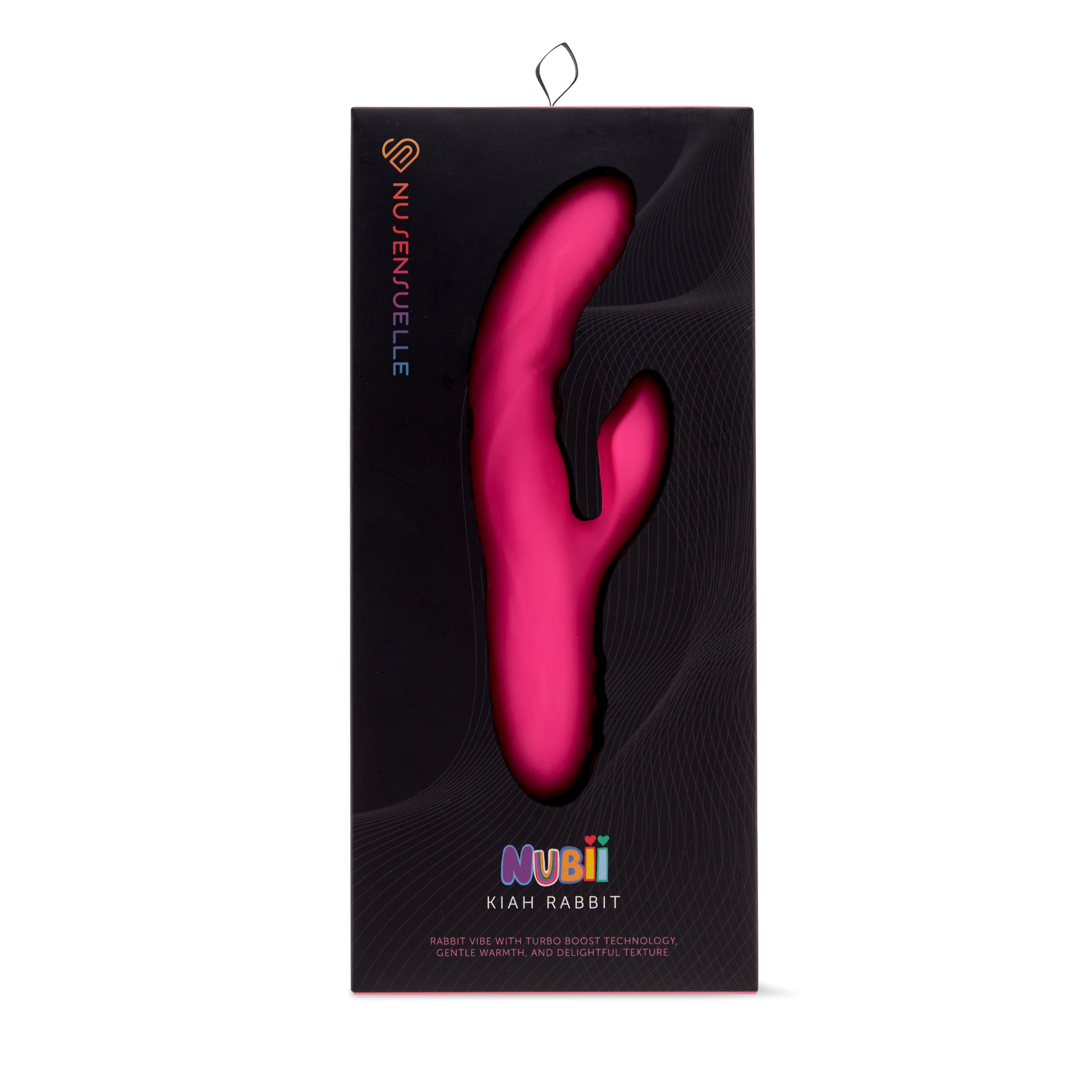 Joining Nubii collection is Kiah–a versatile rabbit vibe powered by two Nubii motors that allow users in their exploratory stage to purchase a luxury rabbit vibe at a more attractive price. Designed for novice and advanced users alike, this dual-stim rabbit enables users to grow and explore new forms of pleasure–like turbo boost, temperature play, and ribbed texture–at their own pace. Each of Kiah’s functions operates independently if users wish to explore them one at a time. Once the user feels comfortable, they can layer all of Kiah’s functions simultaneously, allowing them to customize their experience and discover which intensity levels suit their needs. Kiah redefines the way we envision affordable power.